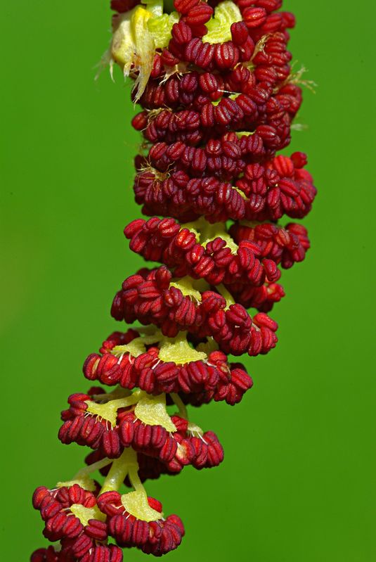 Kvety tvoria veľké, previsnuté jahňady. Peľnicové jahňady sa vyvíjajú pred vypučaním listov. Sú až 1 m dlhé, chlpaté, s veľkým množstvom kvietkov a tyčiniek. Piestikové jahňady sú kratšie a majú väčší počet semenníkov.