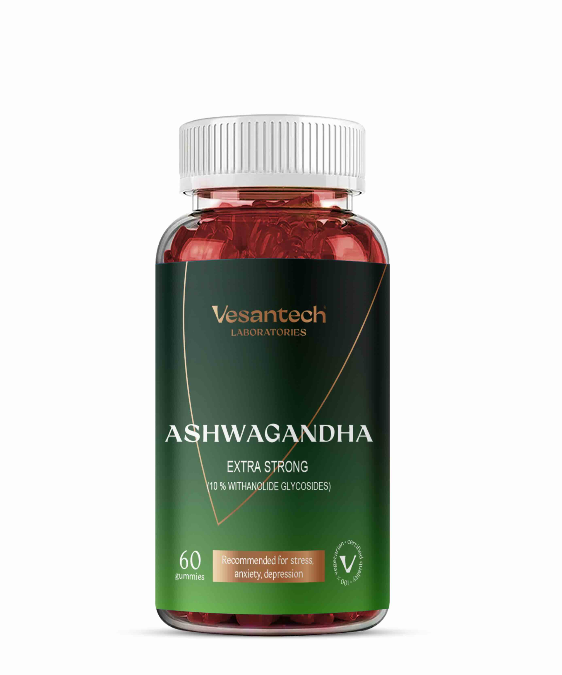 Vesantech Ashwagandha Gummies sú chutné a praktické gumové cukríky s extraktom z ashwagandhy, ktoré obsahujú najvyššiu koncentráciu bioaktívnych látok na trhu. Ashwagandha (Withania somnifera) je známa ako silný adaptogén, ktorý pomáha telu lepšie zvládať stres, zlepšuje psychickú rovnováhu, kognitívne funkcie, pamäť a sústredenie.