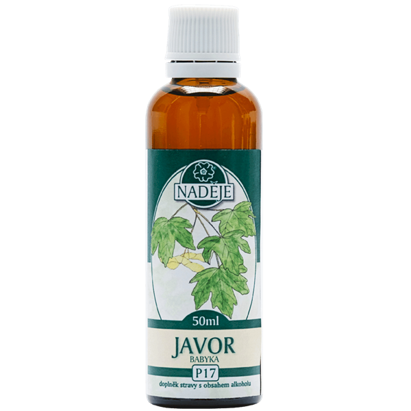 Zloženie: obsahuje púčiky javora poľného v 40% alkohole v pomere 1:1 s glycerínom.