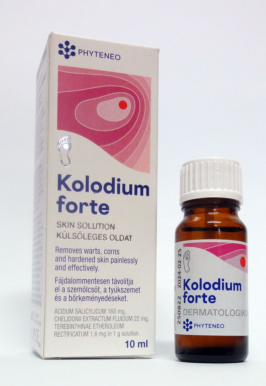 Kolódium forte je určený pre šetrné odstránenie bradavíc, kurích ok a stvrdnutej, zrohovatenej kože.