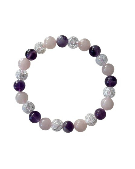 Magický náramok Harmónie z ametystu, ruženínu a krištáľu.