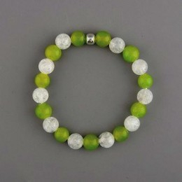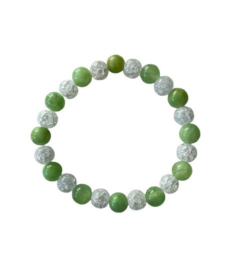 Náramok je z guličiek Nefritu a nalaserovaného krištáľu, ktorý vytvára úžasný efekt. Guličky sú priemeru cca 7 mm navlečených na gumičke.