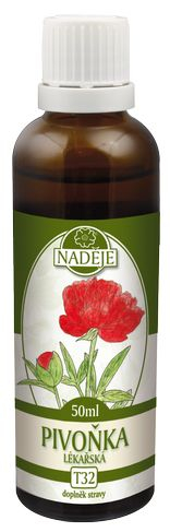 Tinktúra z pivoňky sa odporúča pri menopauze, pri psychickej a fyzickej nerovnováhe u žien. Užíva sa aj pri rôznych typoch bolestí, kŕčoch, ľadvinových a žlčníkových kolikách.