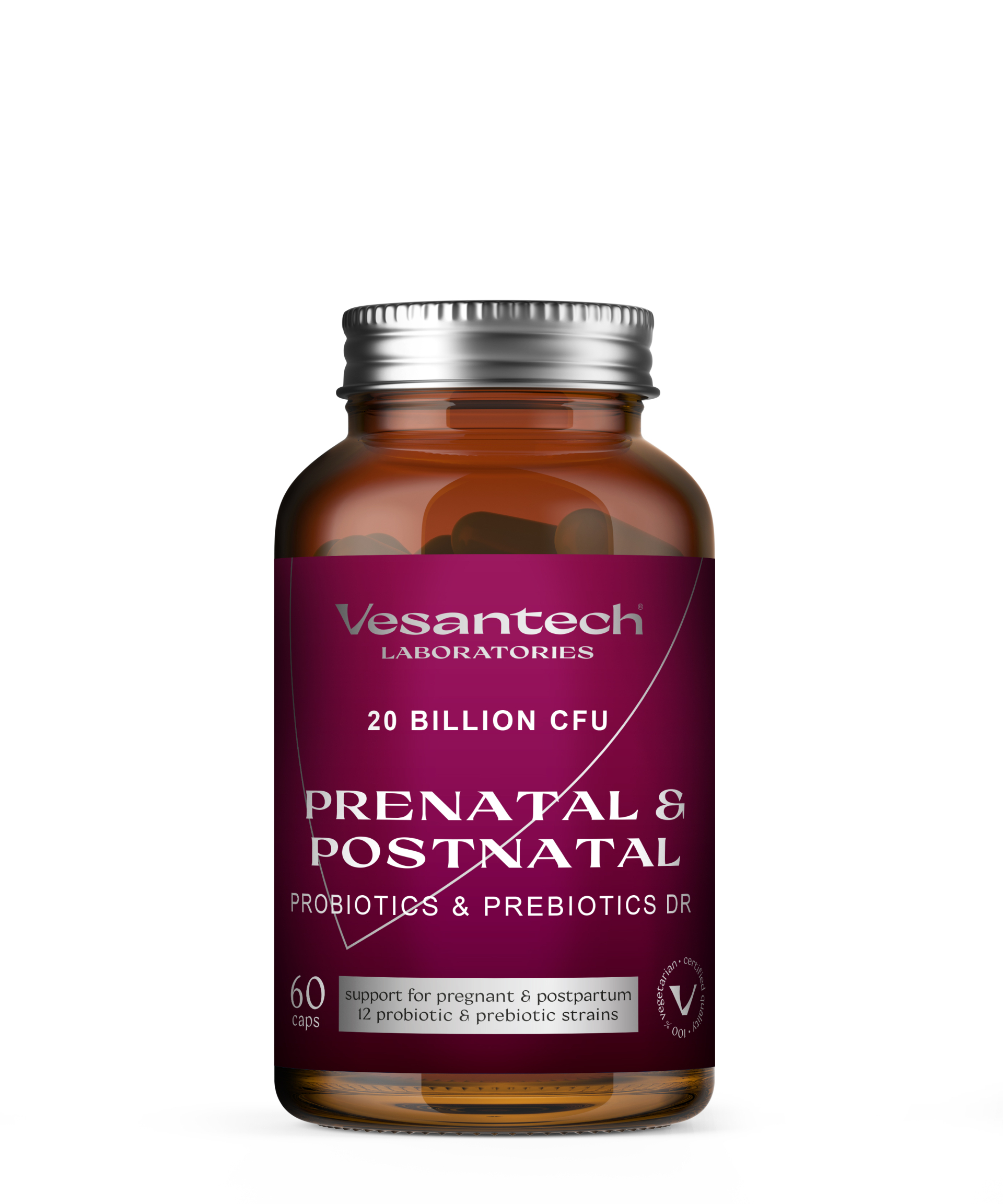 Vesantech Prenatal & Postnatal Probiotics DR je prémiový probiotický komplex vyvinutý špeciálne pre potreby žien počas tehotenstva, po pôrode a v období dojčenia. Bezpečné pre plod, dojča a matku.