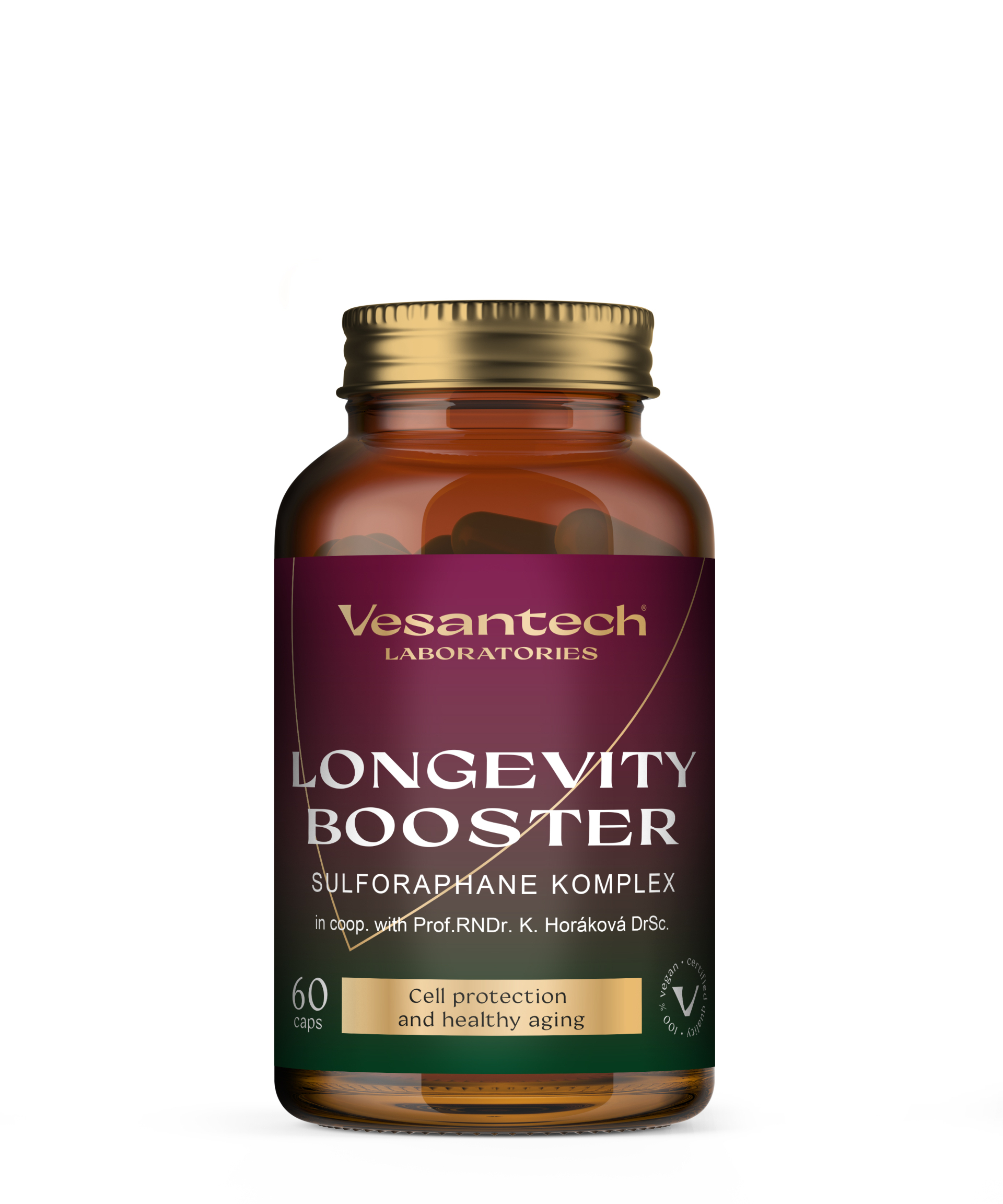 Sulforaphane – prírodný aktivátor génov dlhovekosti je srdcom Vesantech Sulforaphane Longevity Booster -a, "longevity produktu 21. storočia“, ktorú vyvinul náš odborný team v spolupráci s vedkyňou Prof. RNDr. Katarínou Horákovou, DrSc. Je založený práve na báze sulforaphanu a ďalších podporných látok. Spája bunkovú biológiu, epigenetiku a mitochondriálnu vedu na podporu dlhodobého zdravia, vitality a odolnosti organizmu.