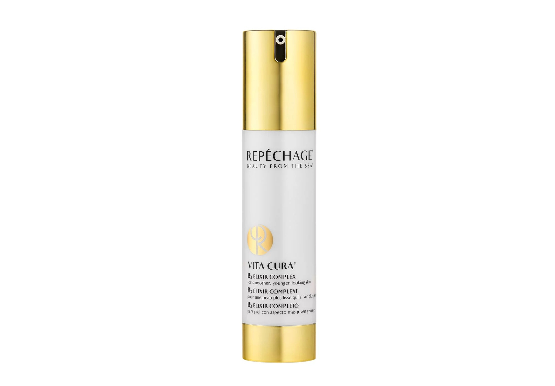 Repêchage® Vita Cura® B3 Elixir je intenzívny hydratačný komplex s najmodernejším zložením, ktorý sa zameriava na elimináciu viditeľných známok starnutia pleti. Obsahuje dve formy kyseliny hyalurónovej, obnovuje potrebnú vlhkosť pokožky a zároveň pomáha znižovať výskyt jemných liniek a vrások. Výkonný niacínamid (vitamín B3), peptidová technológia proti starnutiu a adenozín spolupracujú v tomto elixíre, aby vyhladili vrásky a minimalizovali tmavé škvrny.